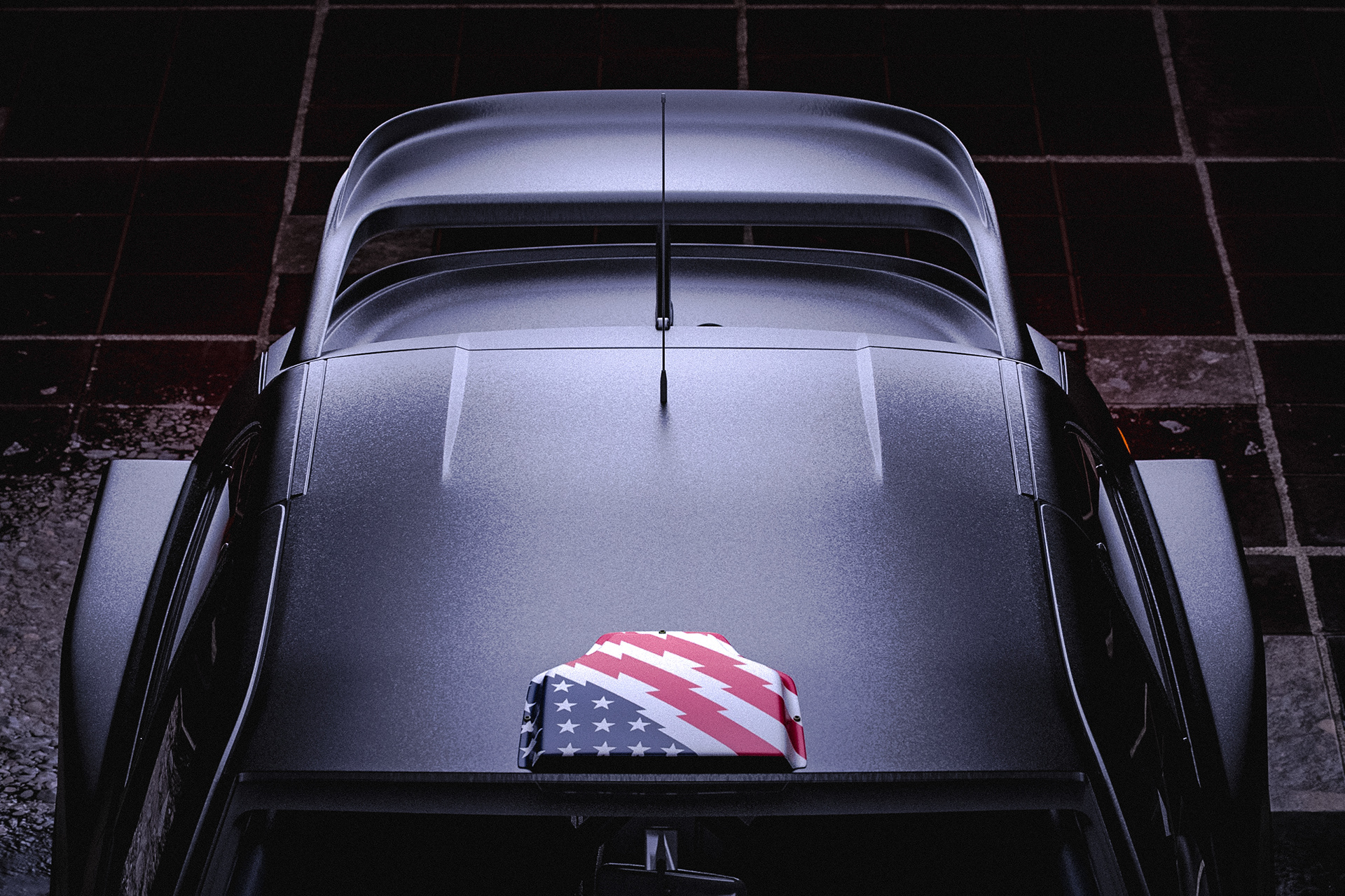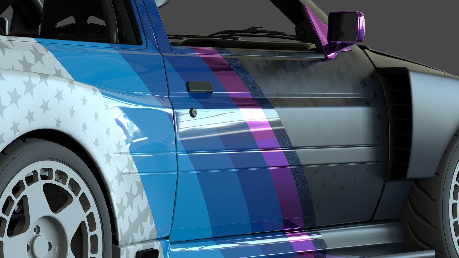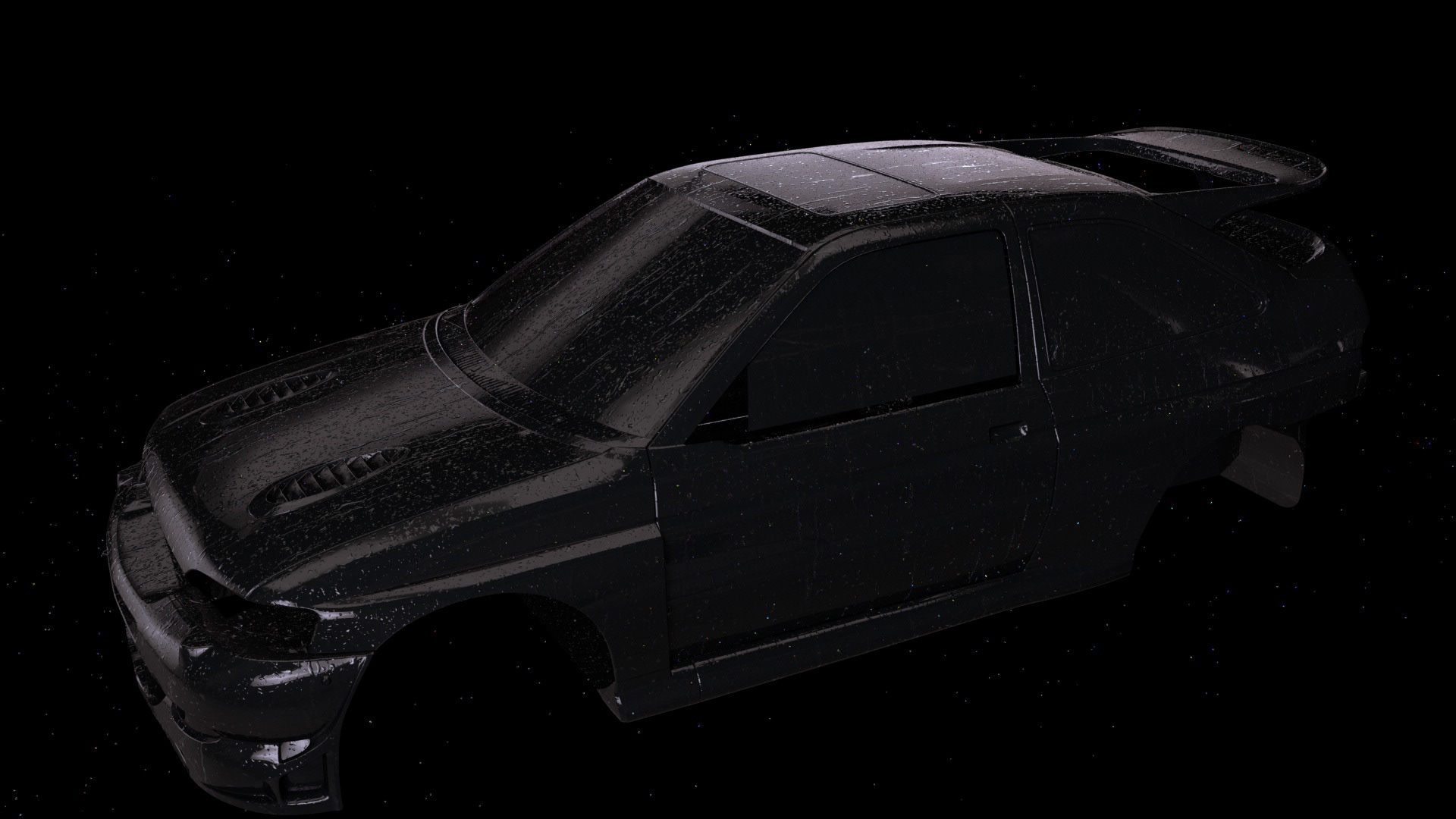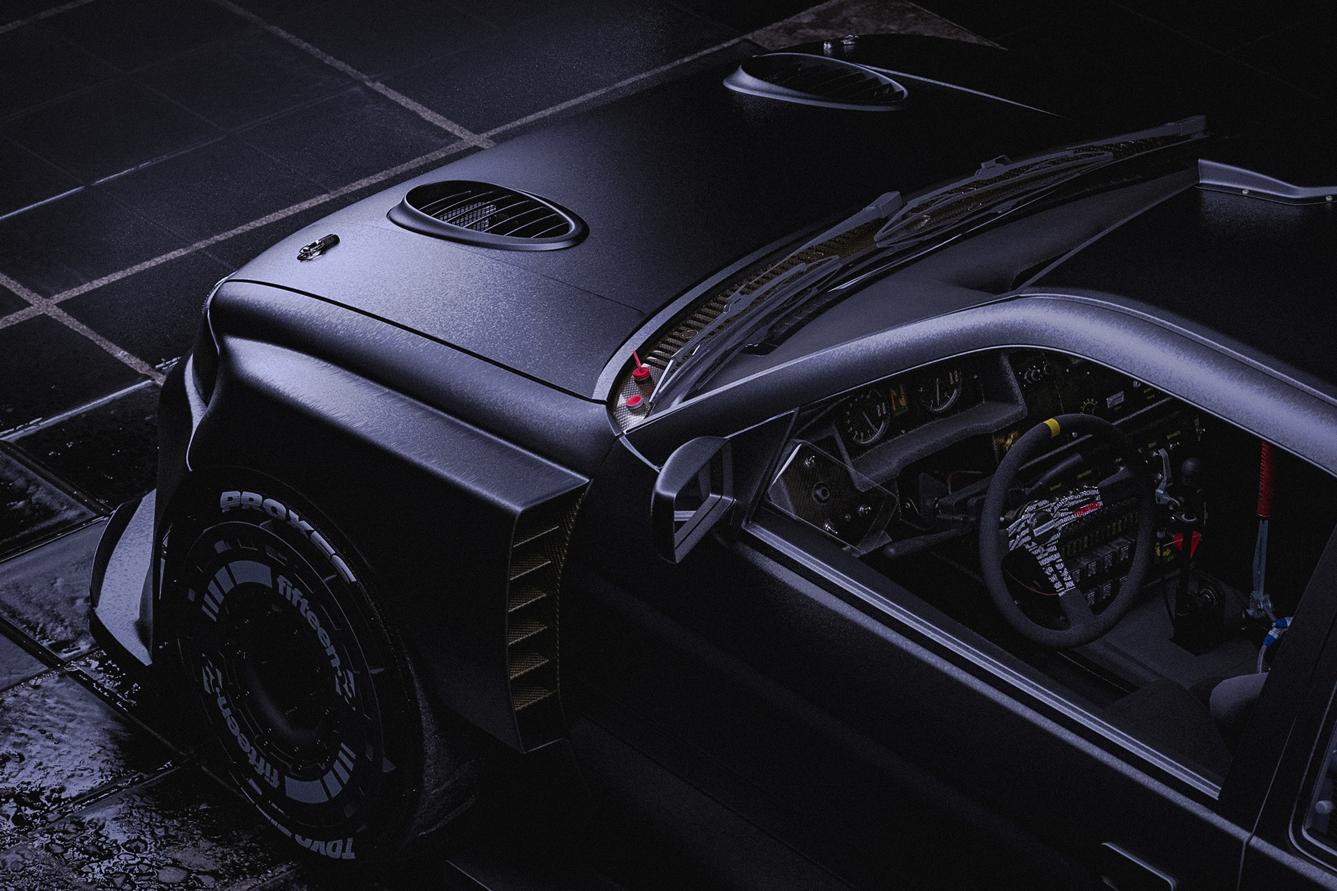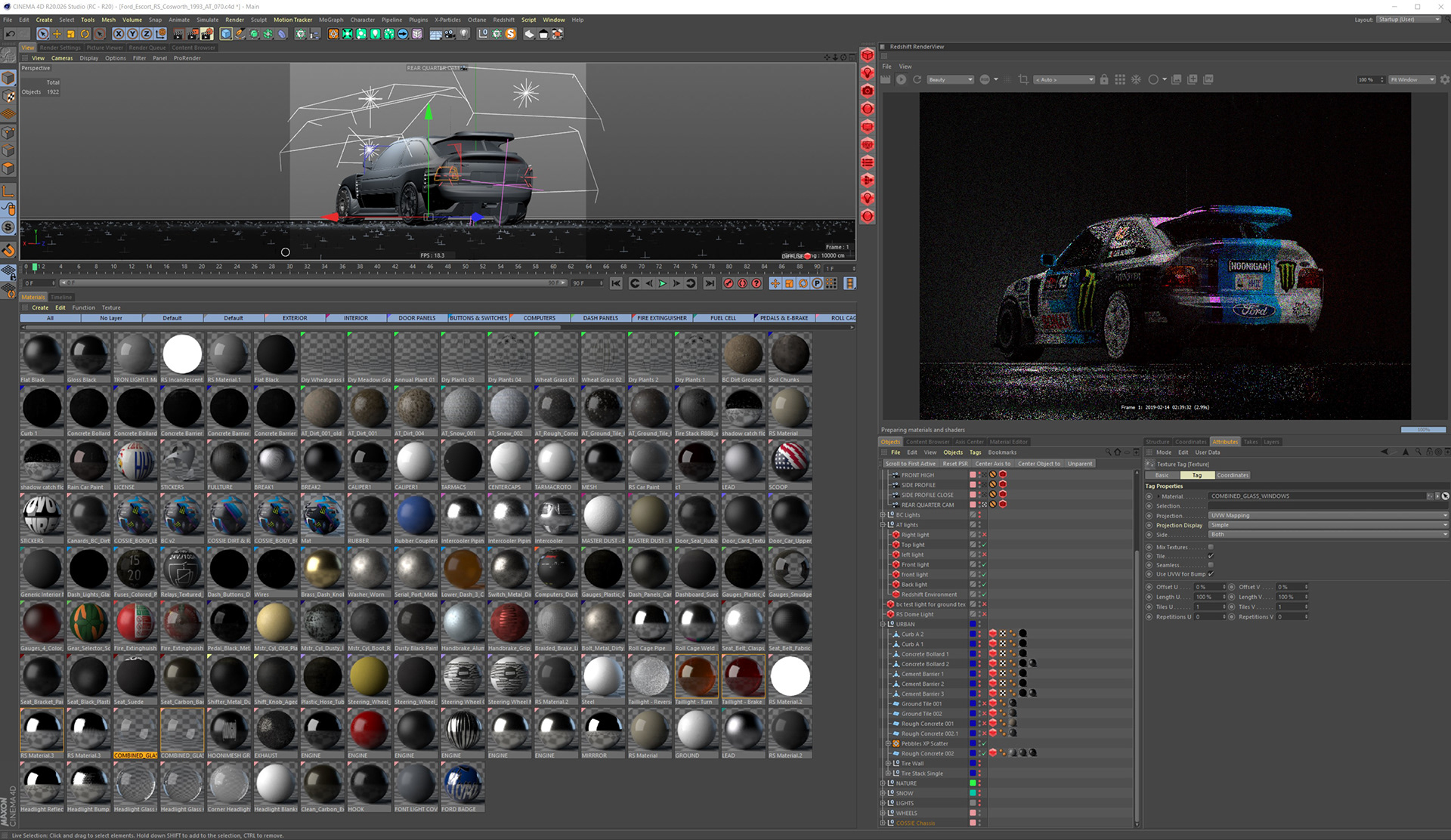 of the car, tires, lights, scope, some special shader like rain and dirt all made on redshift and modeling of extra exterior parts