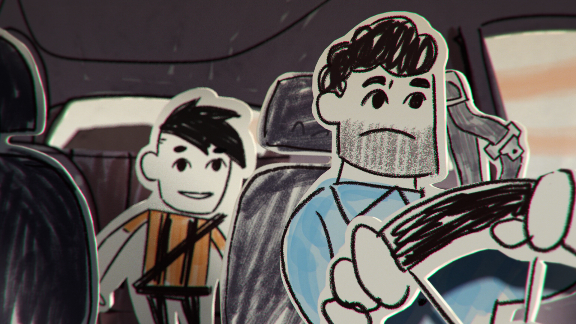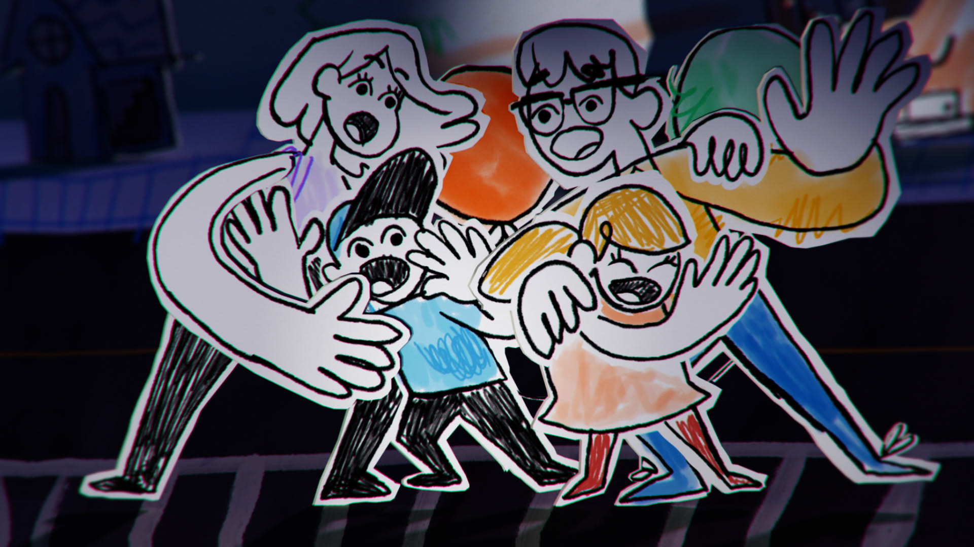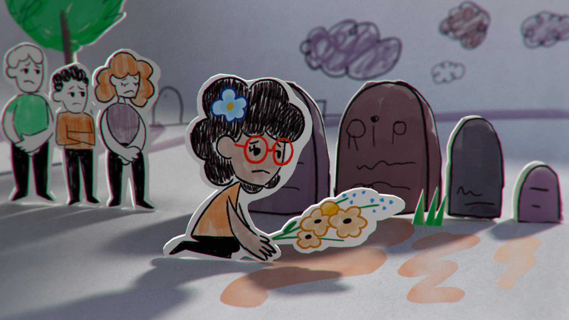 all the illustration where created and animated on 2D and later translate to 3D using a mix of projection mapping and animated paths on 3D to recreate a stop motion style all done using