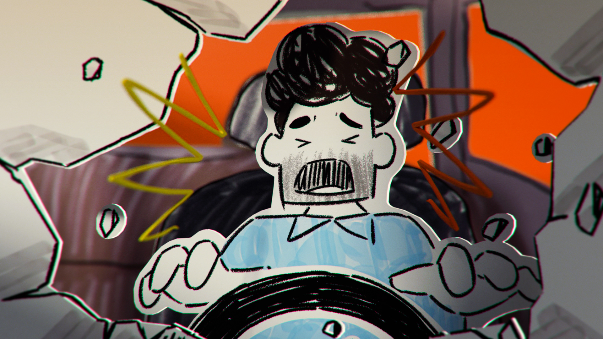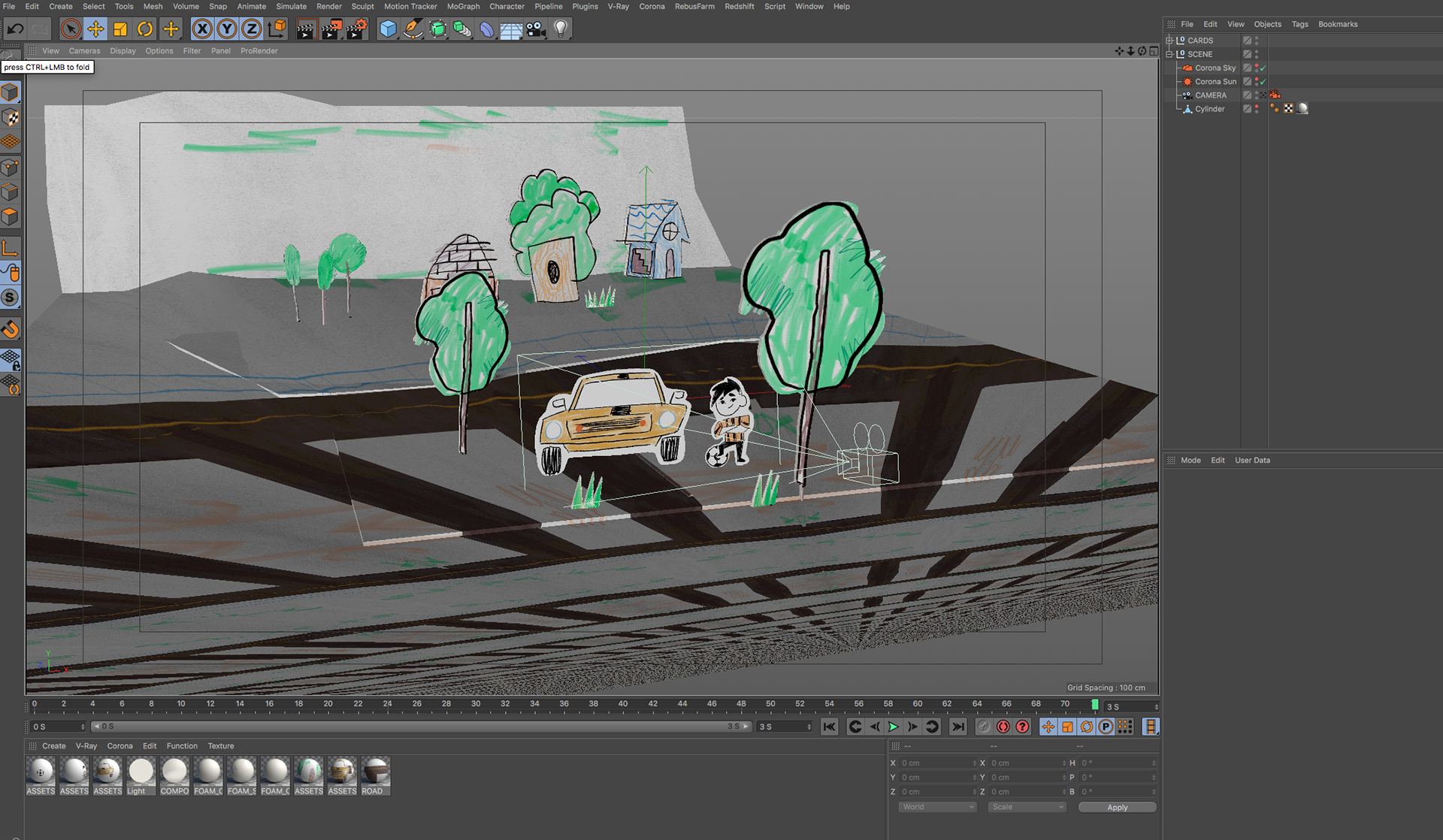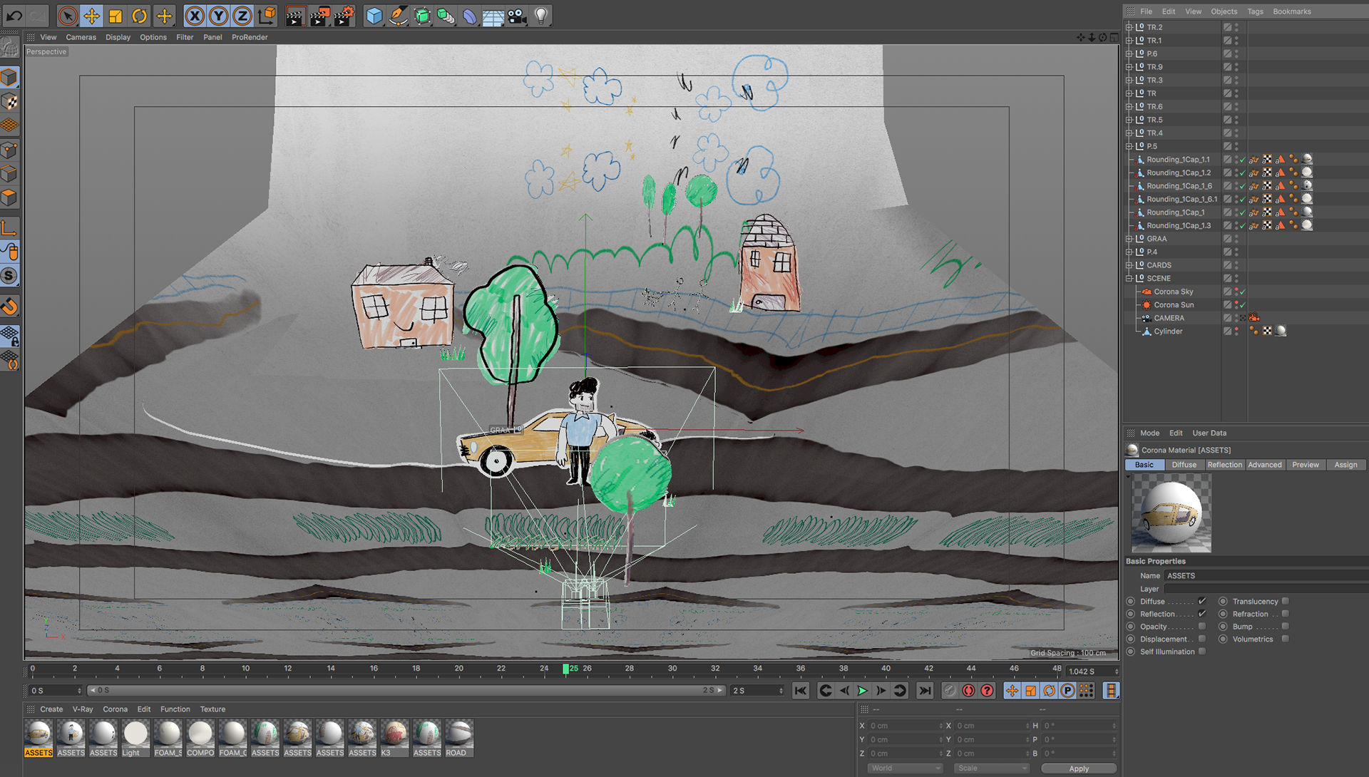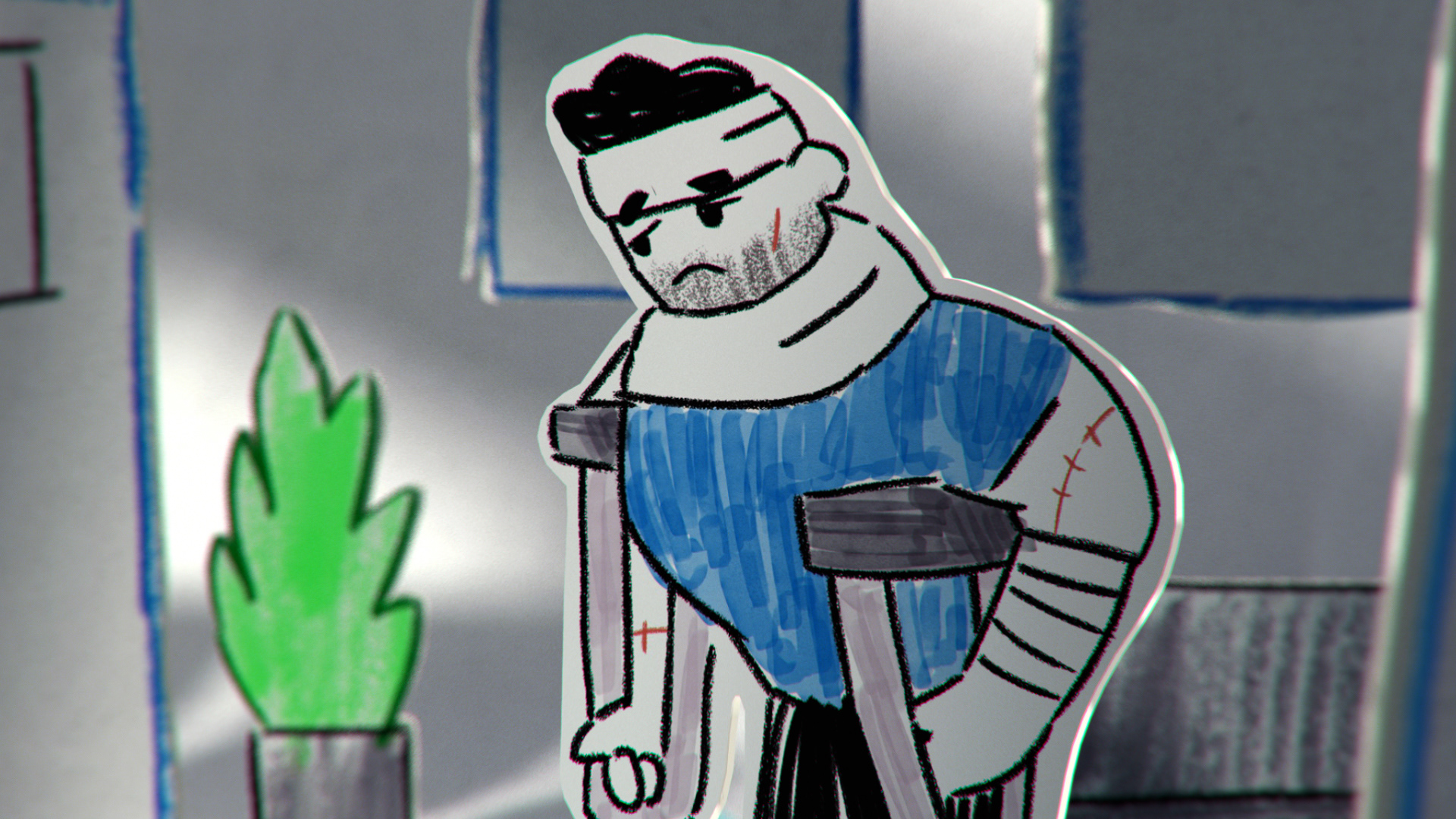 all the illustration where created and animated on 2D and later translate to 3D using a mix of projection mapping and animated paths on 3D to recreate a stop motion style all done using