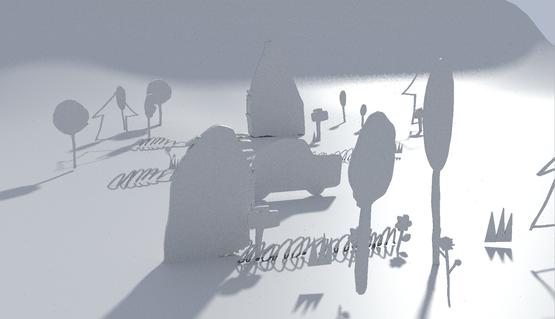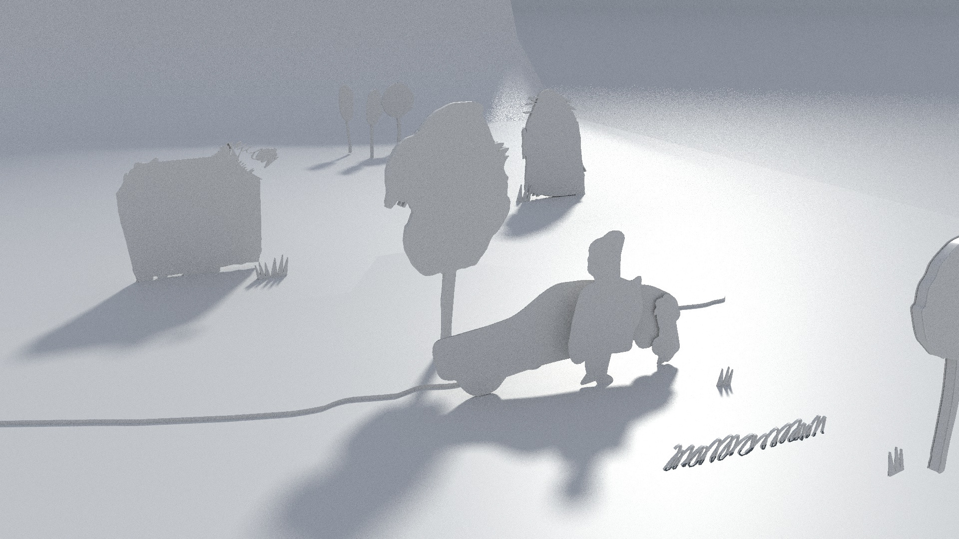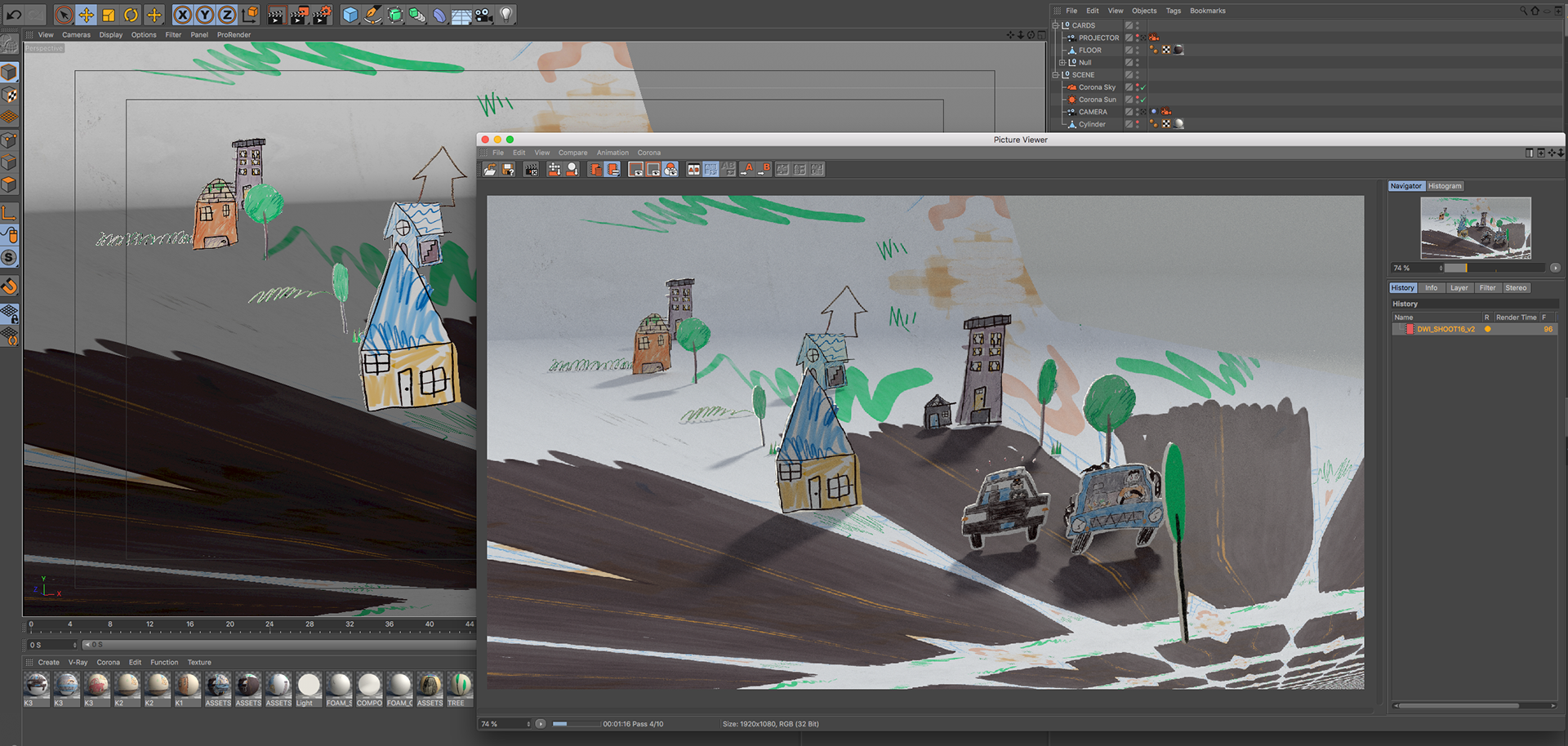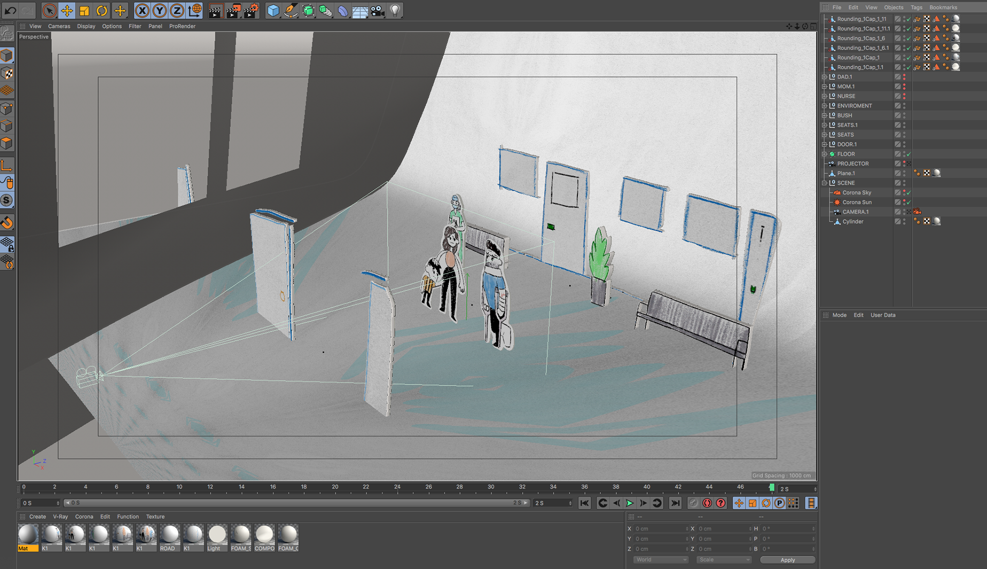 some captures to show the processes of translating all the 2d animations to 3d, illumination and camera setup